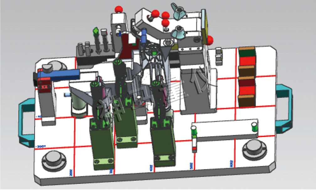 2、圖紙有明確的ABC基準(zhǔn),這時(shí)需要了解主基有沒(méi)有實(shí)體要求,結(jié)合主基準(zhǔn)的公差和位置度公差的要求,設(shè)計(jì)相應(yīng)的主基準(zhǔn)定位方式(一般采用彈性錐銷(xiāo)或者圓柱銷(xiāo)),主基準(zhǔn)盡量采用固定式,輔助基準(zhǔn)一般情況下采用插拔式,可以設(shè)計(jì)成削邊錐銷(xiāo)或者菱形錐銷(xiāo);